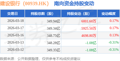 证券之星消息,3月18日南向资金增持6001.6万股建设银行(00939.HK)。近5个交易日中,获南向资金减持的有2天,累计净减持4900.66万股。近20个交易日中,获南向资金增持的有18天,累计净增持2.66亿股。截至目前,南向资金持有建设银行(00939.HK)349.94亿股,占公司已发行普通股的14.54%。