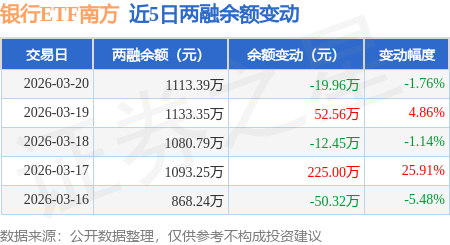 证券之星消息,3月20日,银行ETF南方(512700)融资买入189.32万元,融资偿还209.28万元,融资净卖出19.96万元,融资余额1113.39万元,近20个交易日中有11个交易日出现融资净买入。