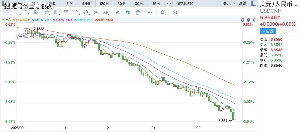 如今这种情况正在发生改变,2025年人民币的平均汇率虽然处于低位,只有7.1429,但是人民币离岸汇率再4月份触底,然后一路升值,到年底突破7,从K线的年线来看,2025年人民币升值幅度高达4.93%,这预示着人民币正在进入新一轮的升值周期。