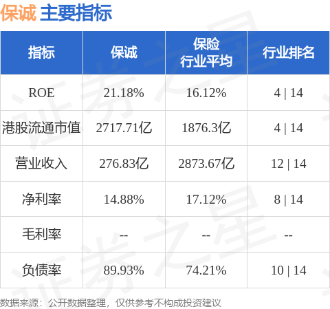 保诚港股市值2717.71亿港元,在保险行业中排名第4。主要指标见下表: