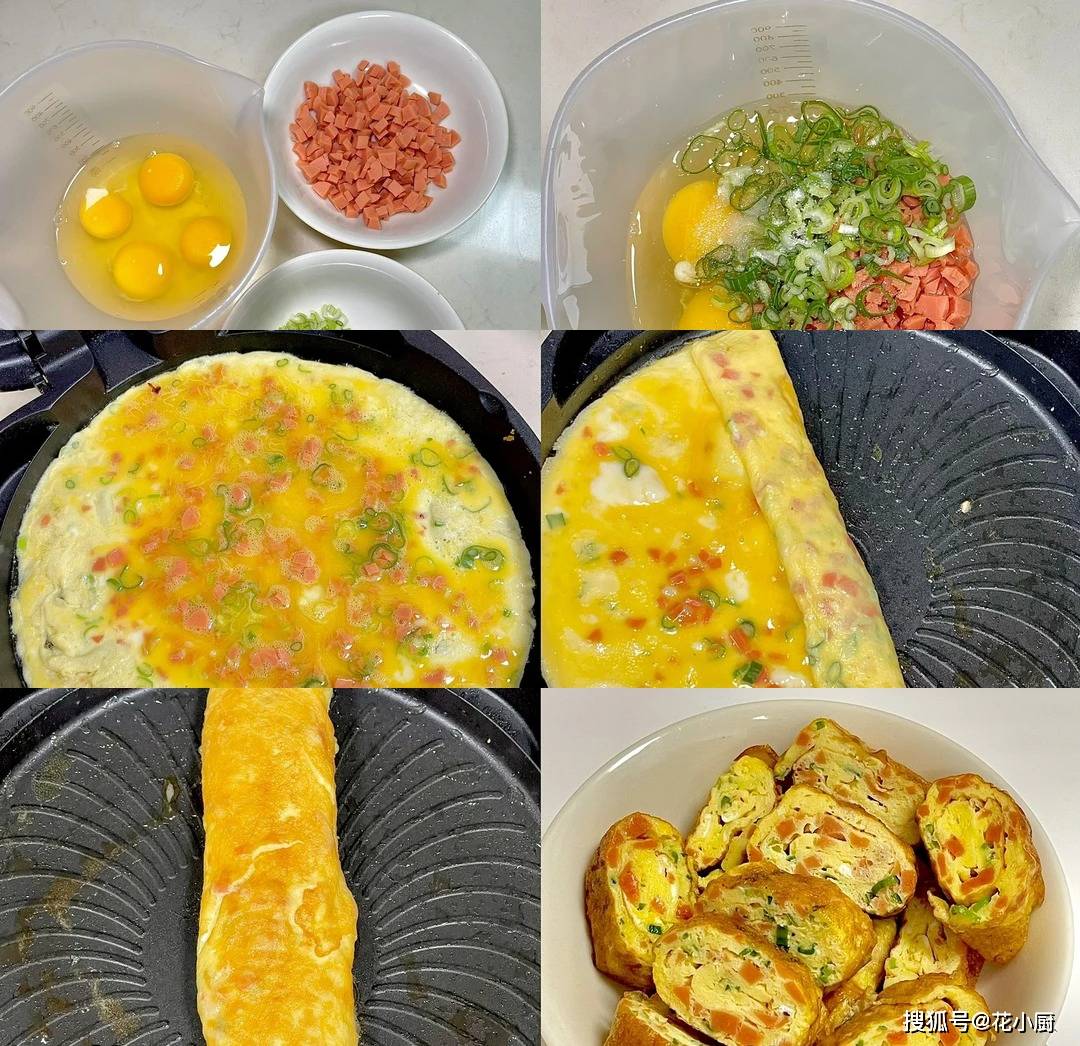 春天孩子长身体,我常做这个火腿鸡蛋卷当早餐。切开一看,层层叠叠的,嫩滑的鸡蛋裹着咸香的火腿粒,小葱的香味也全进去了——一口下去,鸡蛋的嫩滑、火腿的咸香、小葱的提味,完美融合,当早餐或者小零食都绝了,快试试!配杯牛奶或豆浆,营养更全。孩子爱吃,我也省心,关键是快,十分钟不到就搞定。