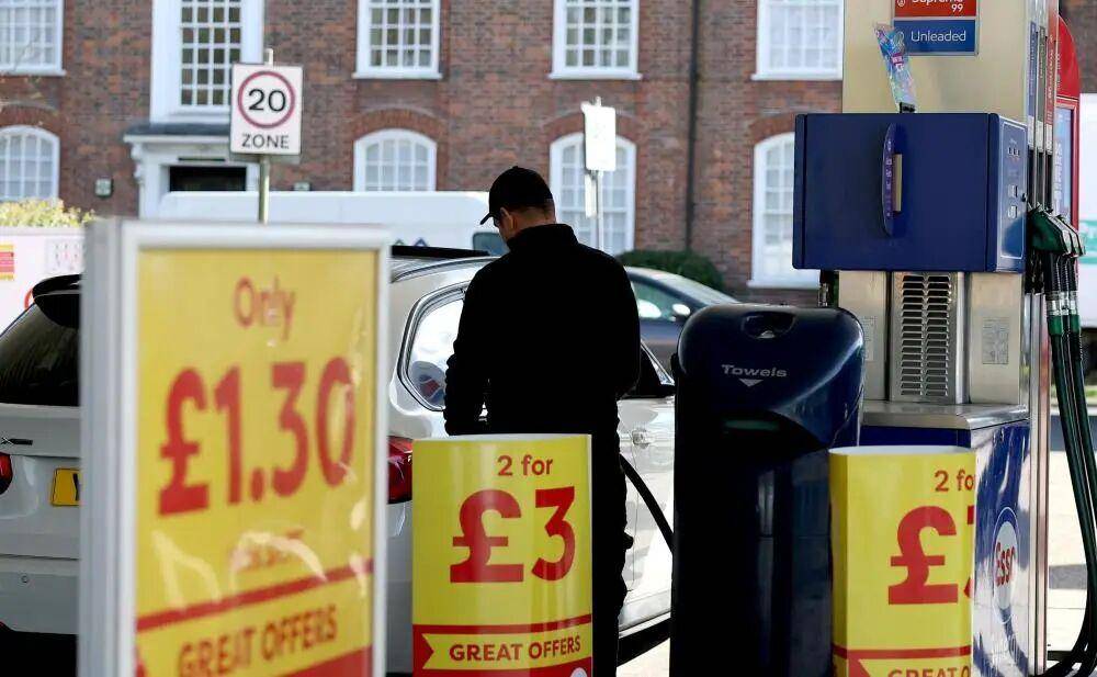 3月26日,车主在英国伦敦一处加油站加油。新华社记者李颖摄