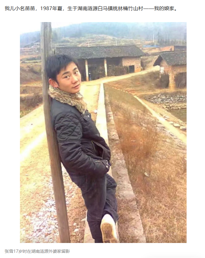 4月6日,据媒体报道,记者找到了张雪母亲的老家,涟源市白马镇桃林堂村(桃林堂社区),采访了张雪的舅舅、表姐等人,他们回忆说,张雪是在桃林堂出生的,小时候虽然生活在麻阳,但放寒暑假会到桃林堂外婆家玩,性格很调皮。