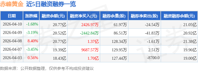 证券之星消息,截至2026年4月10日收盘,赤峰黄金(600988)报收于45.08元,下跌1.68%,换手率2.3%,成交量38.31万手,成交额17.38亿元。