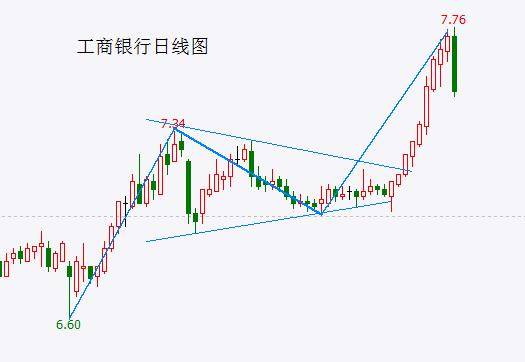 高位连阳后,银行股终于大跌,工商银行跌近3%,日线“一阴吞三阳”,在这里出现应是见顶的标志性信号而非洗盘。此前多次分析过,工商银行日线、月线都走出经典的N字型结构,这种结构一旦走完,理论上是要出现大幅回撤的。再加上其各级别周期高位连阳,在这里见顶的可能性非常大。银行股一旦见顶,将面临月线级别的深度调整,如此则A股的牛市就不会马上启动了。