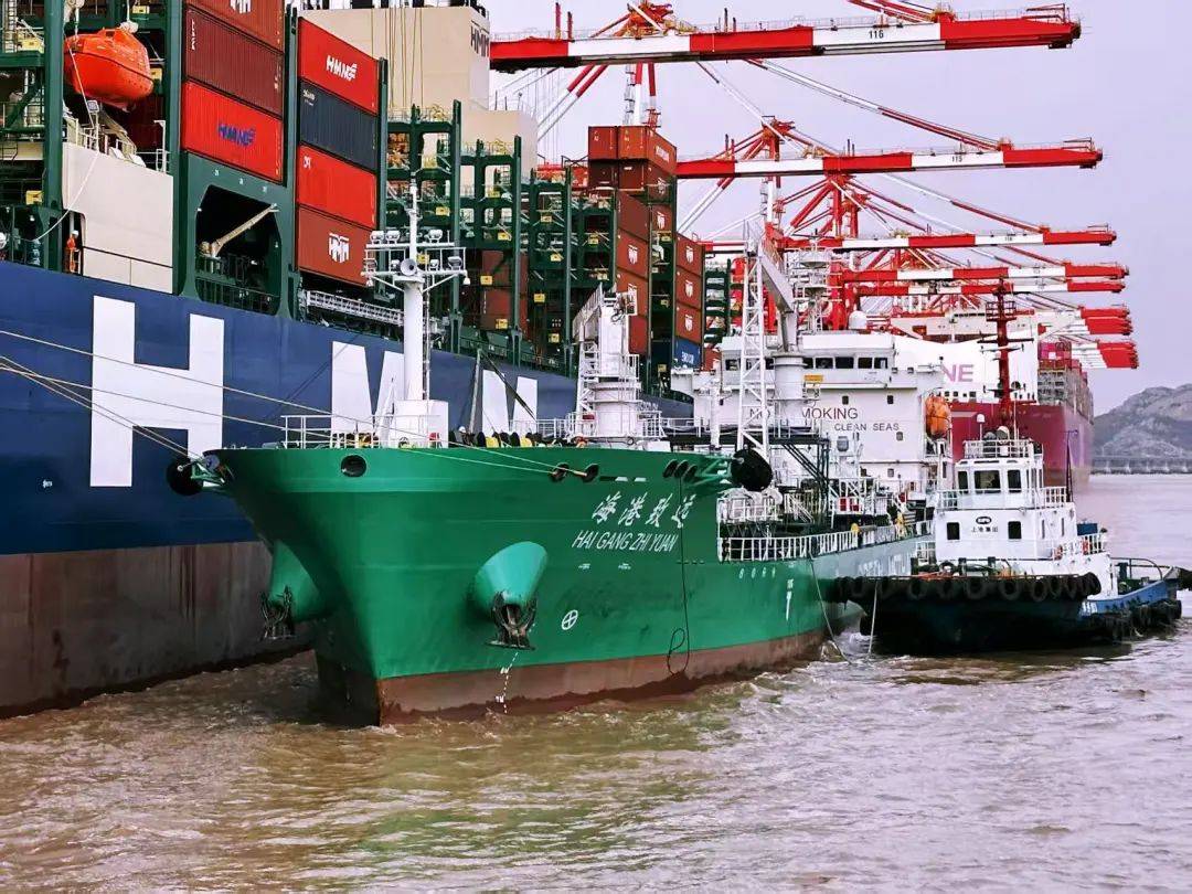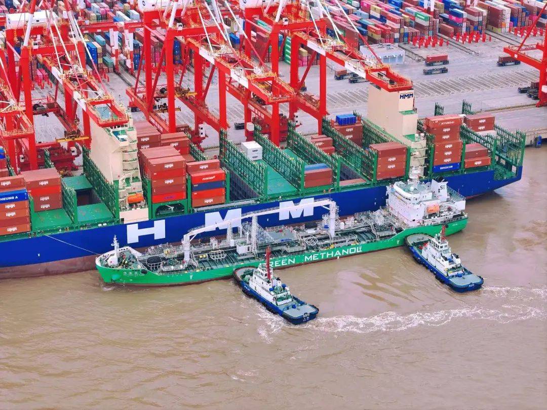 3月29日,“HMM Green”轮在上海港洋山四期自动化码头,完成中国国产绿色甲醇加注“船-船”同步加注作业,这是上海港为国际航行船舶首次批量加注国产绿色甲醇,标志着上海港实现了国产绿色甲醇全产业链供应服务,为国际航运提供绿色燃料加注开启新篇章。