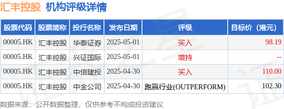 截至2025年7月2日收盘,汇丰控股(00005.HK)报收于95.25港元,上涨0.32%,成交量1185.3万股,成交额11.25亿港元。投行对该股的评级以买入为主,近90天内共有2家投行给出买入评级,近90天的目标均价为103.5港元。华泰证券最新一份研报给予汇丰控股买入评级,目标价98.19港元。