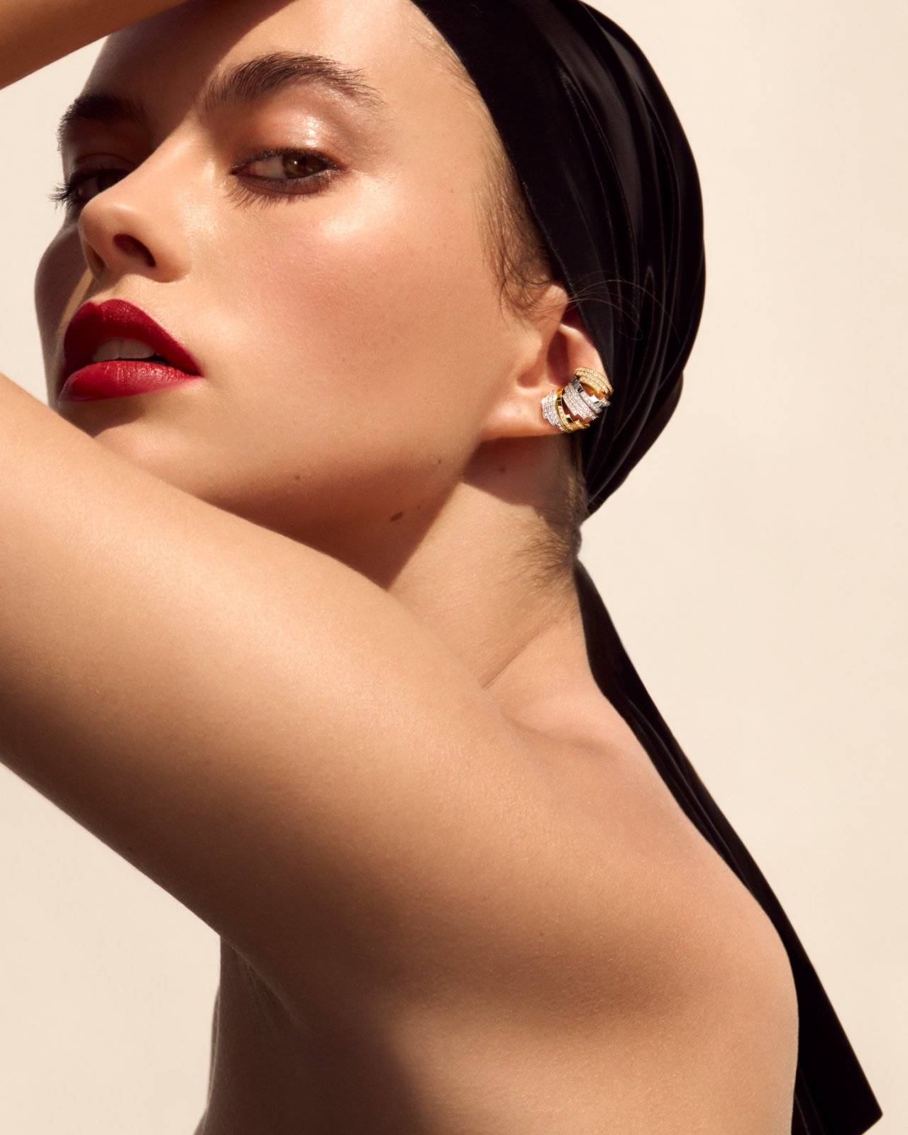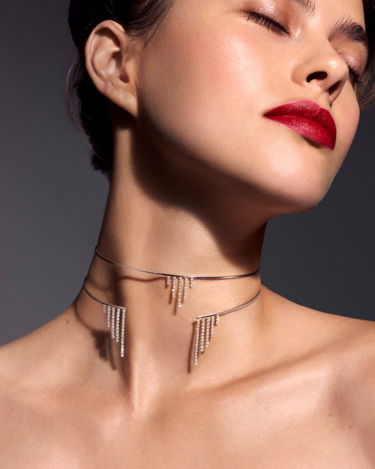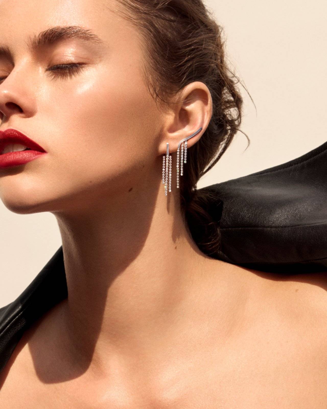 chandelier layered系列以大胆现代的设计语言重新诠释水晶吊灯,将钻石与铂金的华彩层层交织。长短递进、富有建筑感的精妙结构,构筑出层次分明的瞩目存在感。精湛匠艺铸就的流光恒久如初,于肌肤之上勾勒出令人着迷的璀璨韵致。