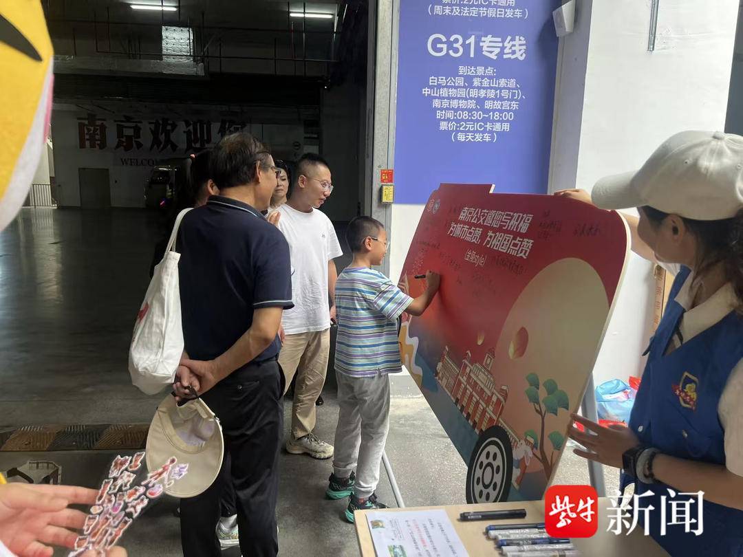 而在金陵STYLE始发站,一场“写祝福、赢奖品”的互动活动也让等车变成乐趣。签名墙上写满了家国祝福,年轻人纷纷打卡分享。“没想到等车也这么有意思。”一位游客开心地说,“旅途的疲劳,一下子就被冲淡了。”