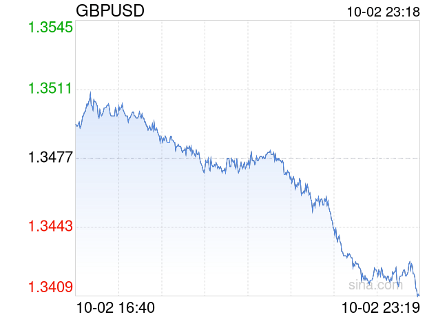 新浪外汇消息2025年10月02日,截至23时18分,外汇市场上英镑兑美元汇率跌破1英镑兑换1.3409美元。跌幅为-0.5046%