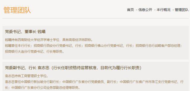 目前,华润银行官网“管理团队”信息已更新,钱曦任党委书记、董事长,袁志忠任党委副书记、行长(任职资格待监管核准,目前代为履行行长职责)。
