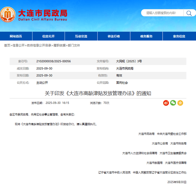 《大连市高龄津贴发放管理办法》