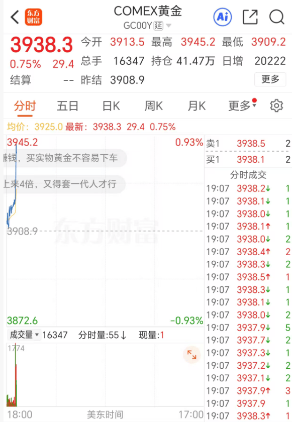 国际黄金盘中暴涨