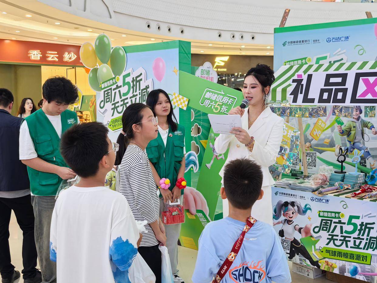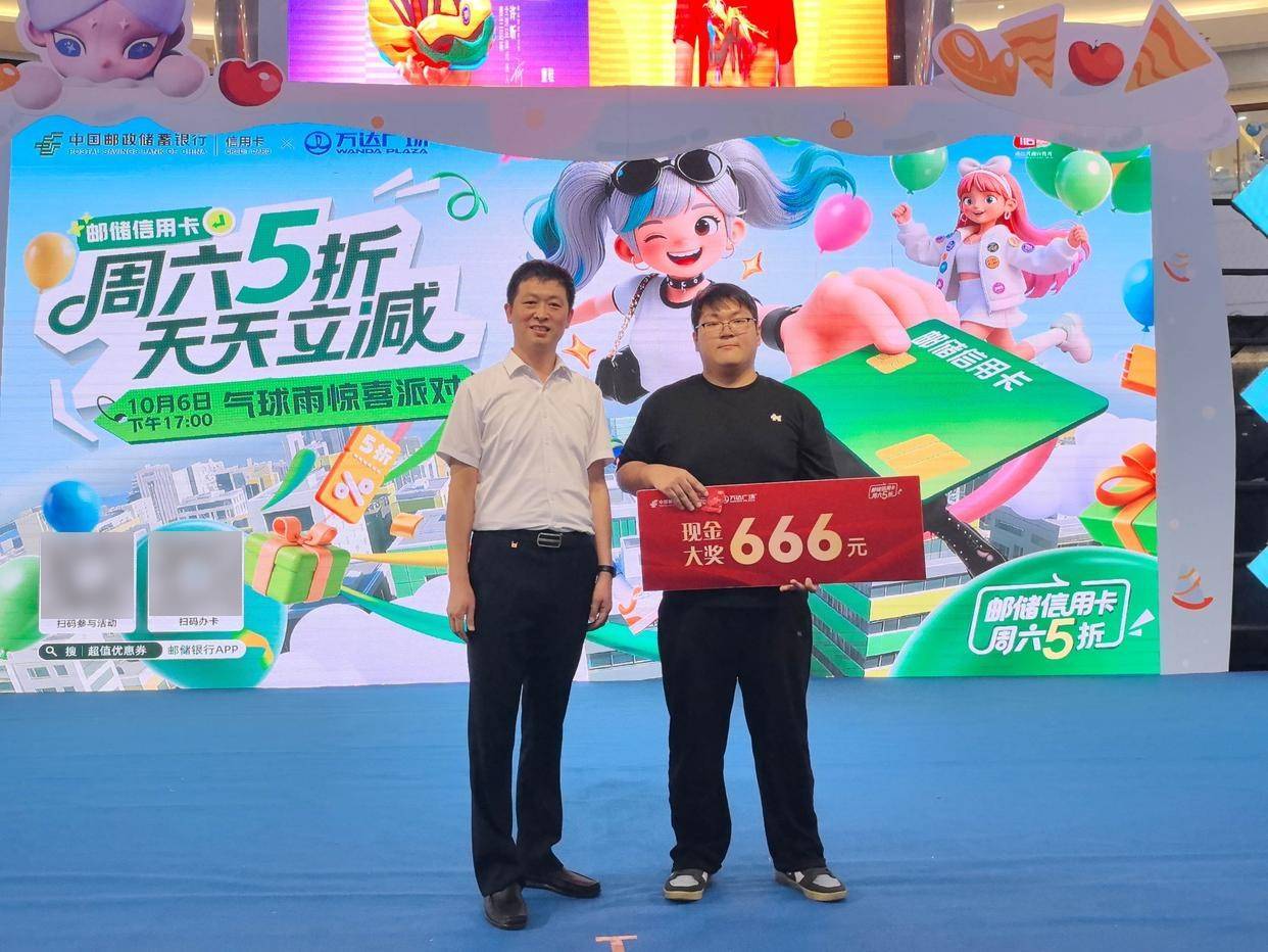 下午4:30,“邮储信用卡周六5折覆盖哪些场景?”“新客办卡有哪些福利?”……主持人围绕邮储信用卡核心权益展开提问,市民积极抢答,现场气氛不断升温。临近五点,全场齐声倒计时“3、2、1!”数千只色彩斑斓的气球如绚烂花雨般洒落,市民纷纷伸手迎接,场面热烈而有序。短短十几分钟,气球中的奖券陆续揭晓,随着666元现金大奖的诞生,现场掌声与欢呼交织,将整场活动推向最高潮。