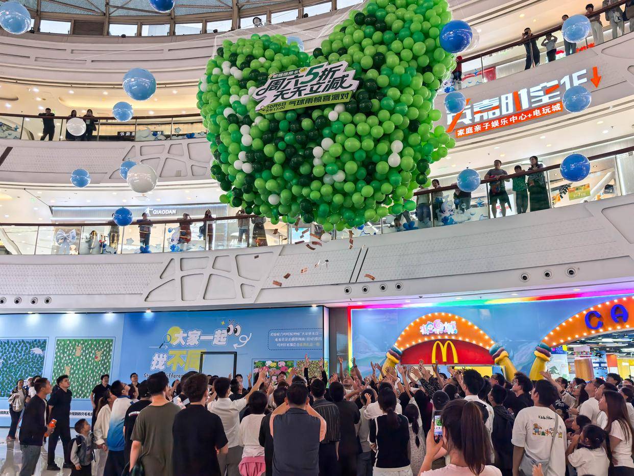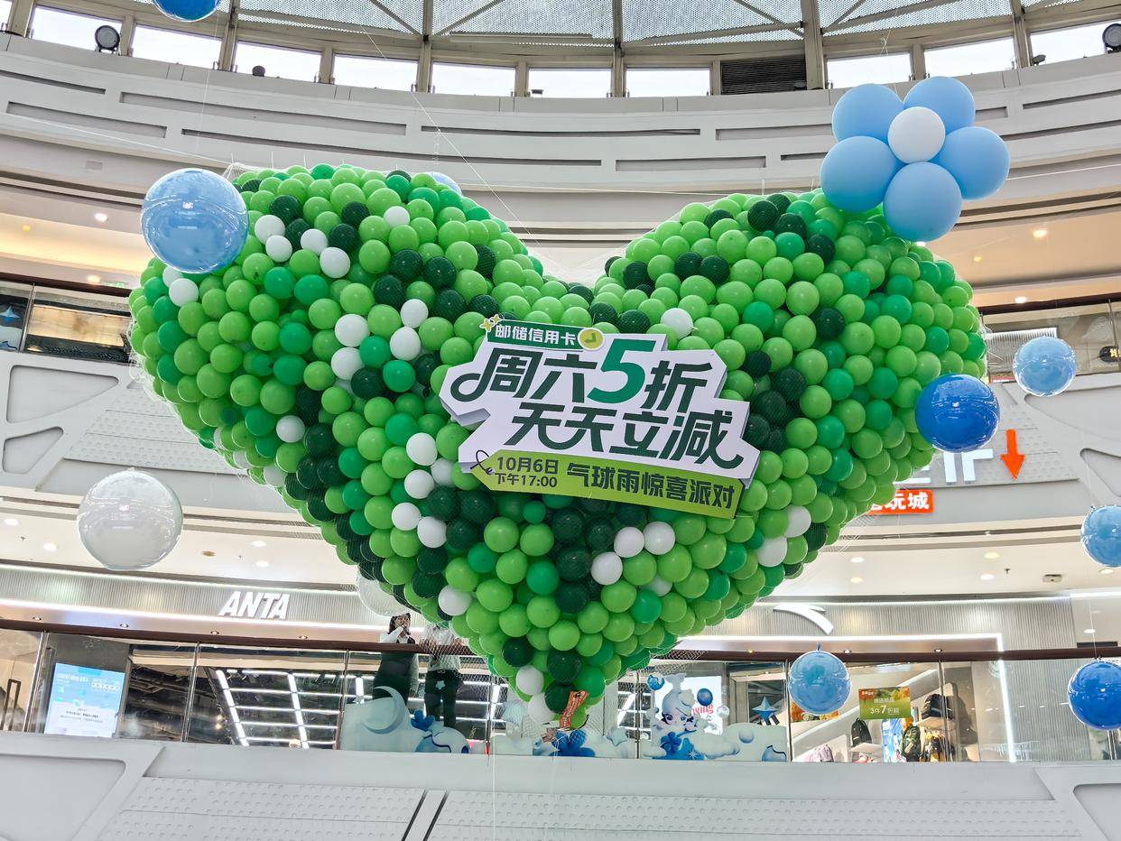 鲁网10月7日讯(记者 刘伊雪) 金秋十月,双节同庆。10月6日,邮储银行青岛分行在李沧万达中庭打造的“周六5折 天天立减 气球雨惊喜派对”迎来高潮时刻,承载着幸运奖券的5000个气球倾泻而下,666元现金大奖当场送出,现场气氛达到高潮,欢声雷动,为青岛市民的双节假期增添了浓浓的喜庆氛围。