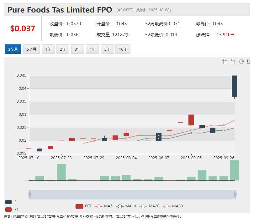 澳华财经在线数据库显示,PFT最新价0.044澳元,已发行股本1.4亿股,市值618万澳元。