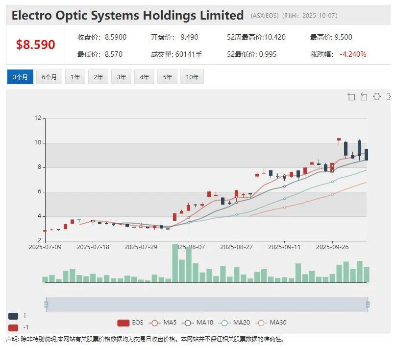 军工明星股Electro Optic Systems Holdings (ASX: EOS) 周一确认获1.08亿澳元合同 股价高开低走暗藏玄机