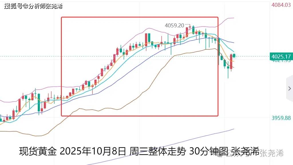 上交易日周三(10月8日):国际黄金继续强势反弹收阳,受到美国政府“停摆”危机持续发酵,避险资金源源不断地涌入而突破4000美元关口刷新历史高点,多头动力持稳,虽然有回调风险,但鉴于看涨前景良好,回调也将是震荡调整的入场机会。
