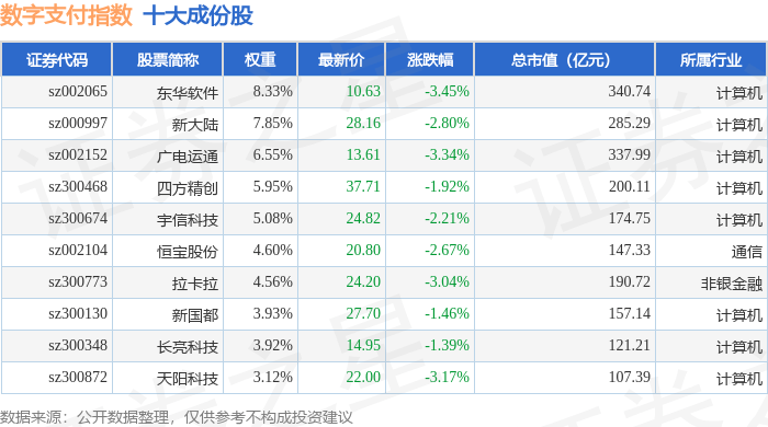 数字支付(980113)指数十大成份股详情如下: