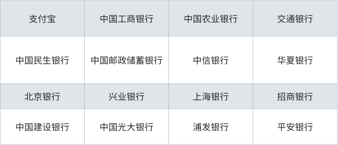 更多支持的银行请在支付页面跳转的第三方支付平台查询。