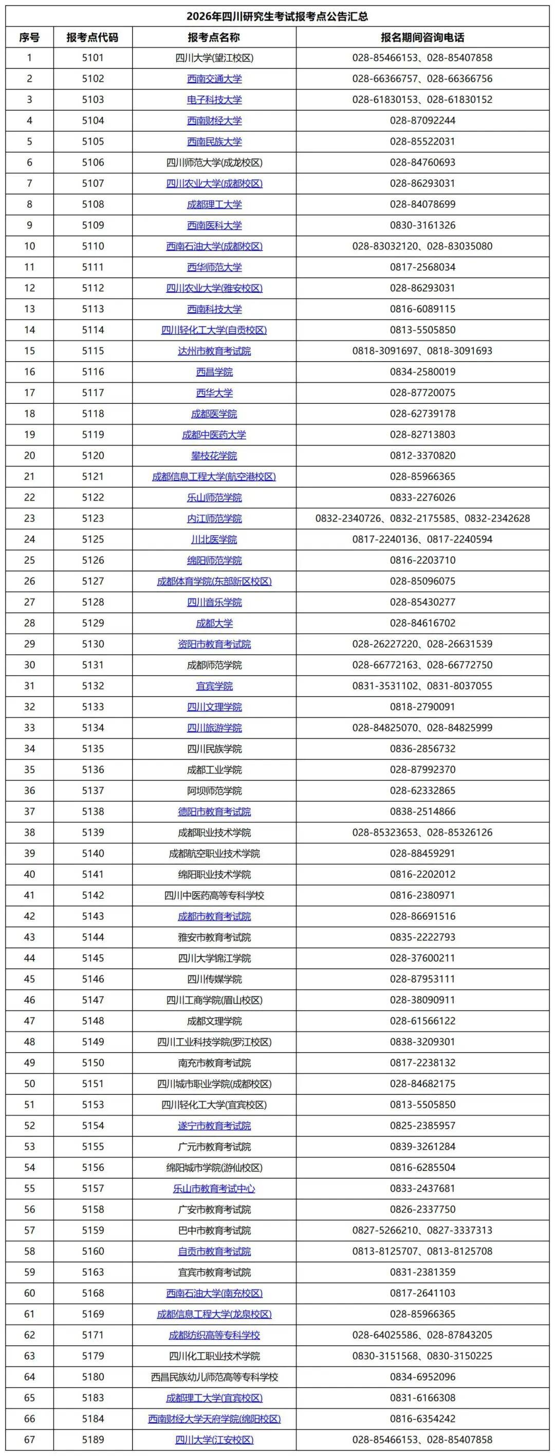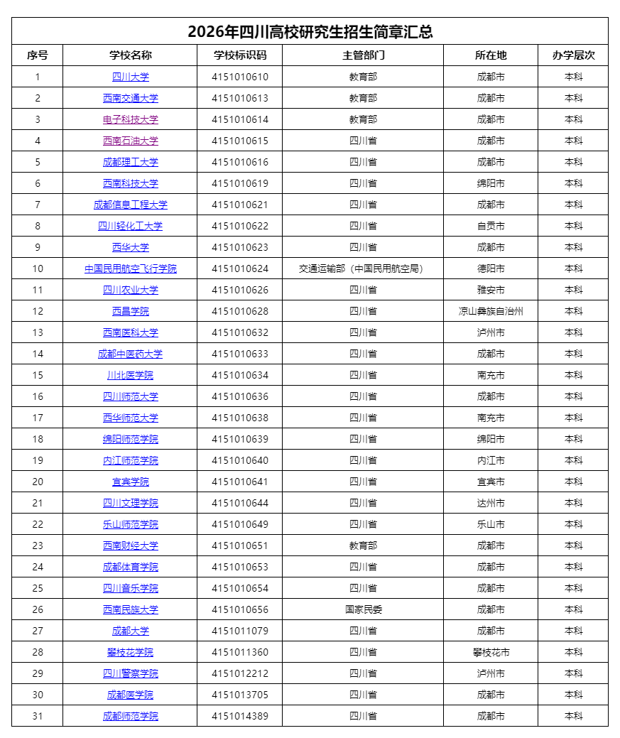 最后,小编为大家收集了川内院校2026年研究生考试招生简章和报考点公告,有需要的同学可以