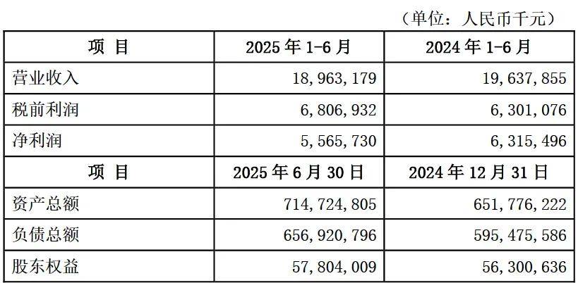 2025年上半年,微众银行实现营业收入189.63亿元,同比下降3.44%;净利润55.66亿元,同比下降11.86%。
