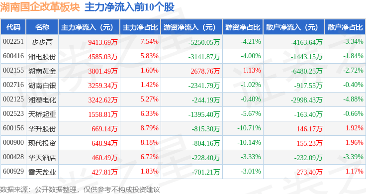 从资金流向上来看,当日湖南国企改革板块主力资金净流出891.31万元,游资资金净流出9378.85万元,散户资金净流入1.03亿元。湖南国企改革板块个股资金流向见下表: