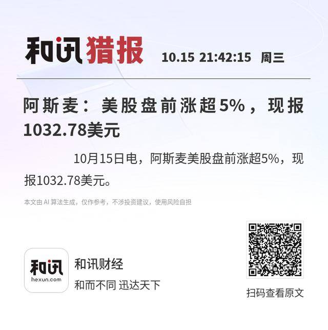 10月15日电,阿斯麦美股盘前涨超5%,现报1032.78美元。