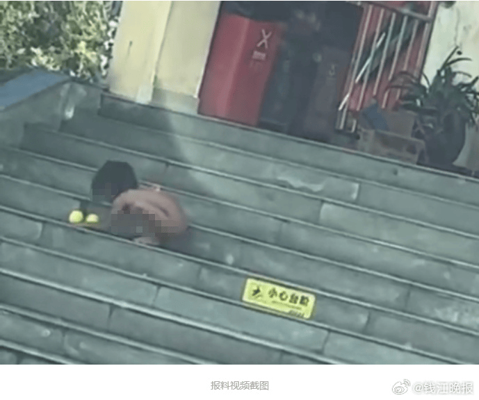 网友提供的视频显示,一个一丝不挂的孩子,趴在台阶上吃食物,身体黑黢黢的,头发乱糟糟的,旁边还有一位抱着小孩的大人好像正在与其说话。