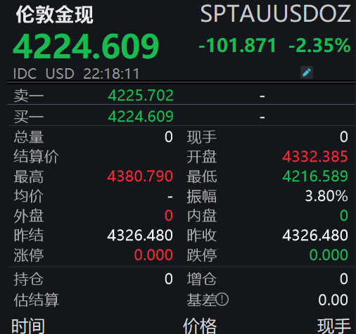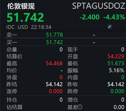 【大河财立方消息】北京时间10月17日晚间,国际金银快速下挫,截至发稿,现货黄金跌2.35%,报4224.609美元/盎司;现货白银跌4.43%,报51.742美元/盎司。
