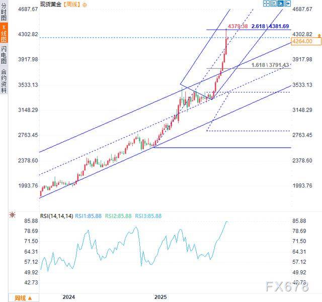 黄金技术分析:破纪录暴涨如火如荼,警惕衰竭风险