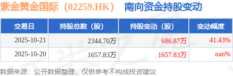 证券之星消息,10月21日南向资金增持686.87万股紫金黄金国际(02259.HK)。截至目前,南向资金持有紫金黄金国际(02259.HK)2344.7万股,占公司已发行普通股的0.87%。