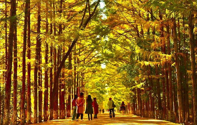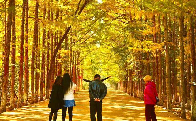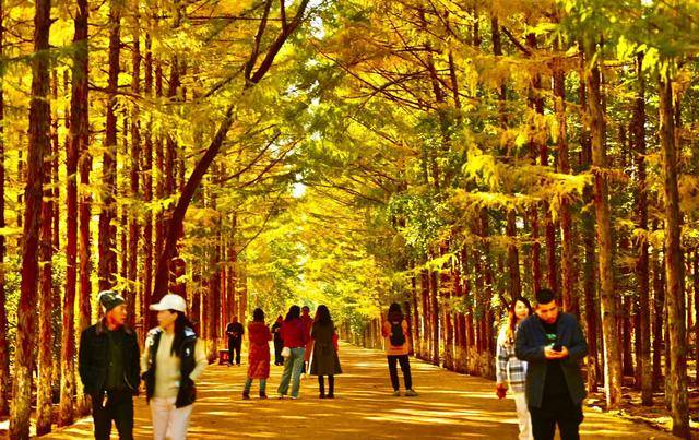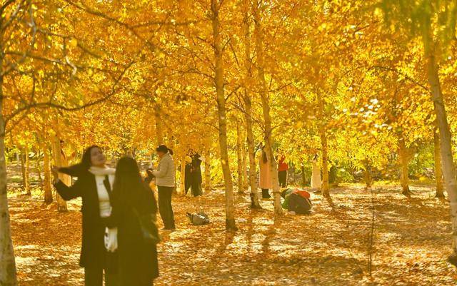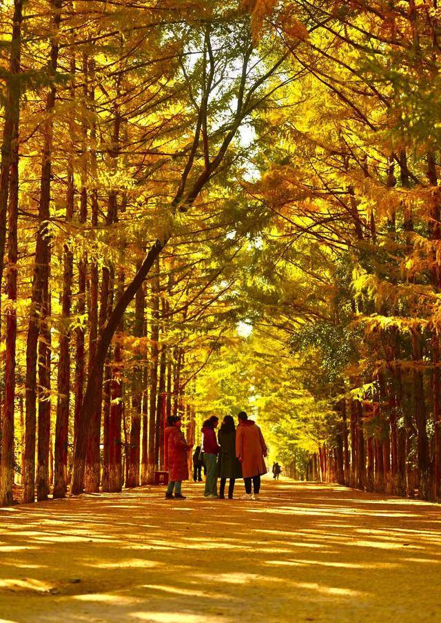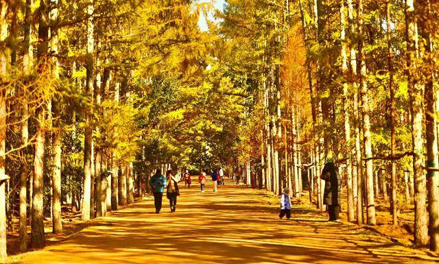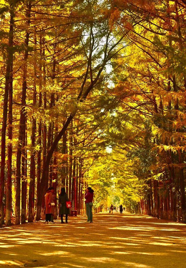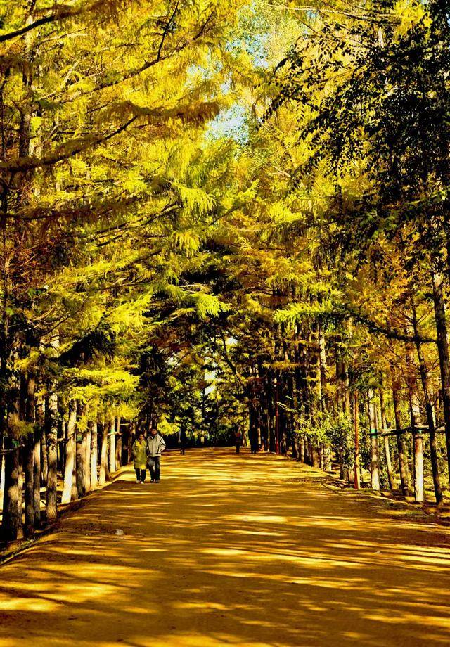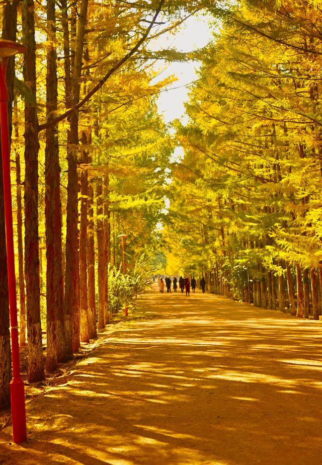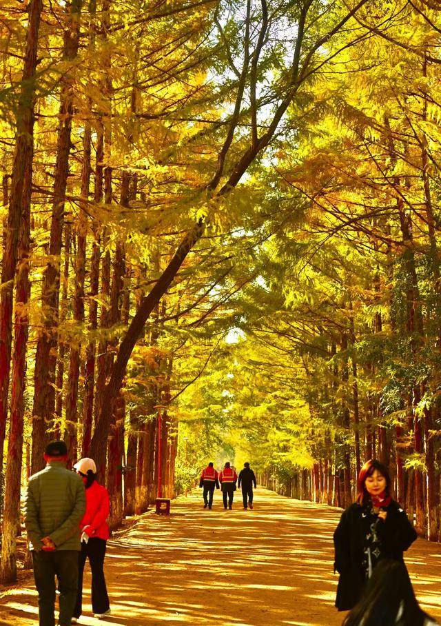 脚下,偶尔飘落的“金色”松针,铺成细碎的“金毯”,踩上去发出轻柔的“沙沙”声;身旁,市民们或举着手机定格美景,或带着孩子追逐飘落的叶片,或与家人并肩漫步,享受难得的秋日闲暇。摄影爱好者则扛着相机穿梭其间,寻找光线与金叶的最佳结合点,试图将这份秋日美景永久留存。