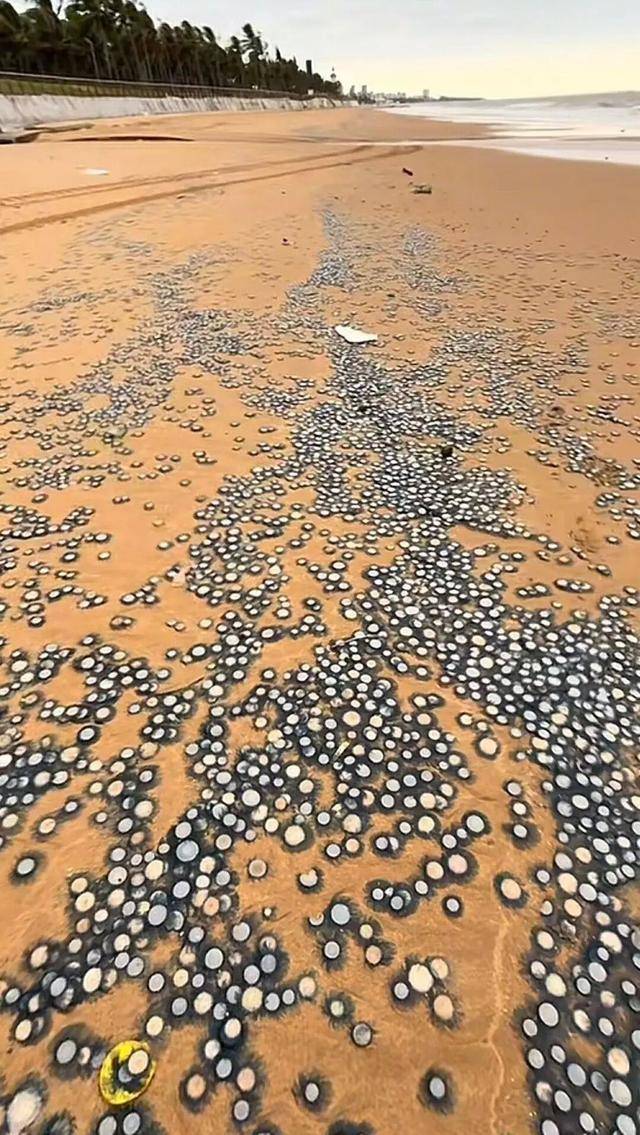 马军还解释了银币水母的特殊结构与移动方式:“它和普通水母不同,属于群体生物,由数百个水螅虫共同组成一个整体,看似完整,实则一碰就碎。这些水螅虫没有自主游泳能力,大多时候只能随着风浪、洋流漂移,仅具备简单的下潜能力。遇到外界刺激,它们会释放毒素自我保护,且这种毒素在水母死亡后仍会留存。建议公众远离分布区域,等待环卫部门清理或海浪将其带走。”