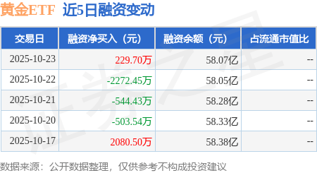 证券之星消息,10月23日,黄金ETF(159934)融资买入2.77亿元,融资偿还2.74亿元,融资净买入229.7万元,融资余额58.07亿元。