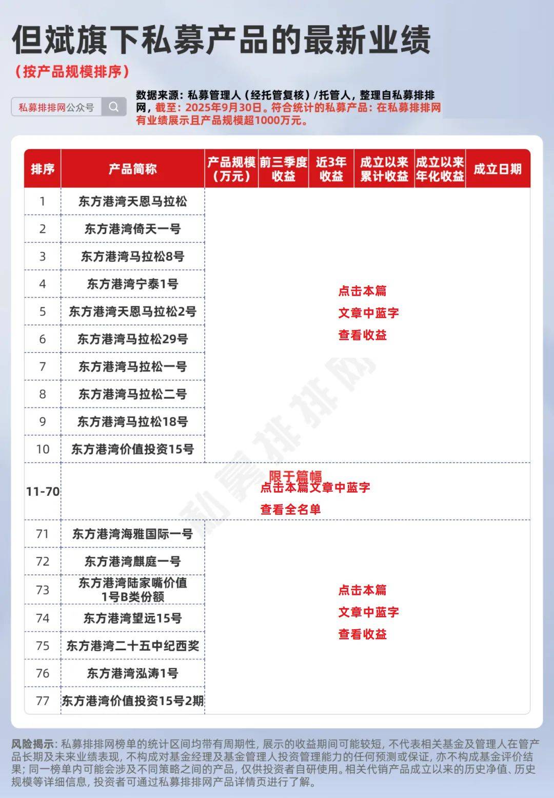 数据显示,截至2025年9月末,但斌管理的77只私募产品在私募排排网有业绩展示,其中73只产品的净值在今年9月创了历史新高,占比约95%,仅剩4只产品还未新高。但斌旗下产品今年前三季度收益均值约为***%。