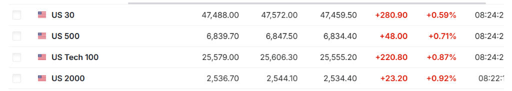 - 加密货币:比特币上涨1.1%,至114,622美元。以太币上涨 2.6%,至 4,169.84 美元。