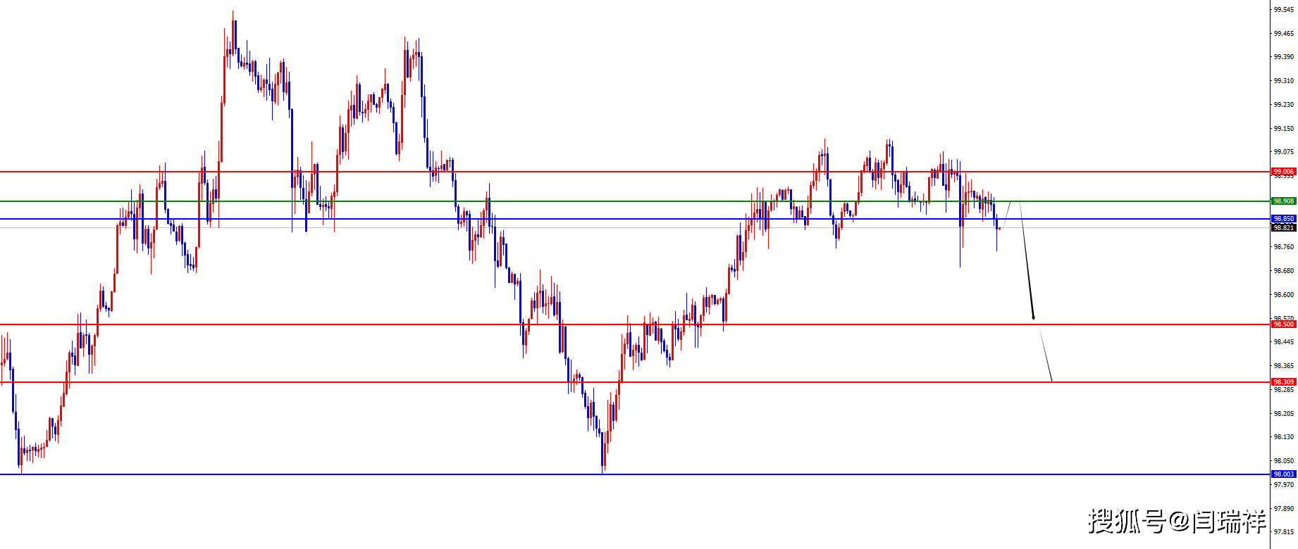 美指98.90-99区间空,防守5美金,目标98.50-98.30