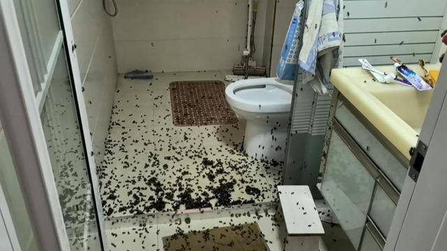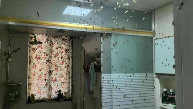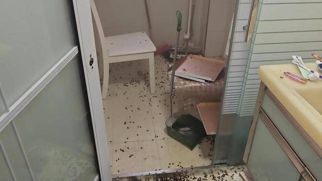 消防员等联系上四楼户主父亲,打开房门的瞬间,所有人都惊呆了 —— 成群蜜蜂像 “迎宾队伍” 一样迎面飞舞,阳台、客厅、卧室到处都是它们的身影,而浴室更是 “重灾区”,一推开门,黑压压的蜂群瞬间喷涌而出,让人下意识往后退。