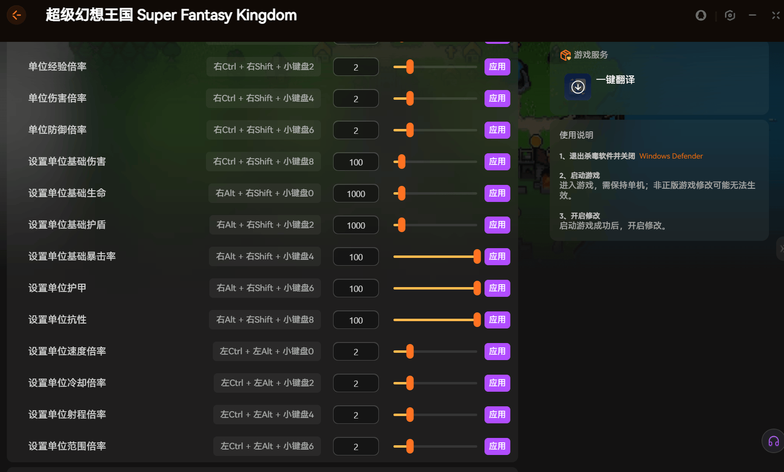 除了金币和材料还能调整其他内容。比如单位经验倍率和伤害倍率。防御力和移动速度也能修改。让游戏体验更轻松。