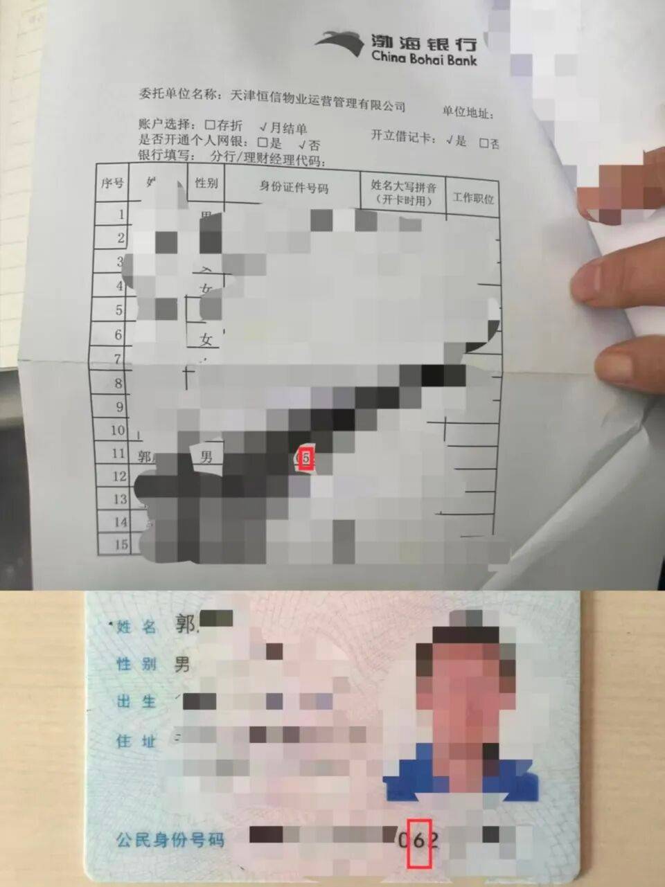 “我是在今年9月11号才发现这个事儿的。”郭先生告诉记者,他名下多出的两张渤海银行借记卡,并非他本人办理。根据其中一家涉事支行提供的信息,办卡方是他曾经的任职单位——天津恒信物业运营管理有限公司。