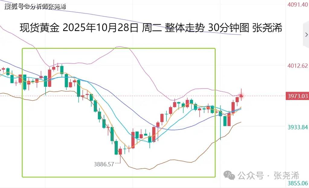 上交易日周二(10月28日):国际黄金震荡触底回升式收跌,其形态上,有止跌看涨的预期,这暗示下方空间有限,行情即将回落调整到位,并再度起涨攀升。虽因市场还存在美国政府停摆解除后,以及美联储降息落地带来的卖事实下跌风险,但其带来的短线回落,也是多单入场的机会。