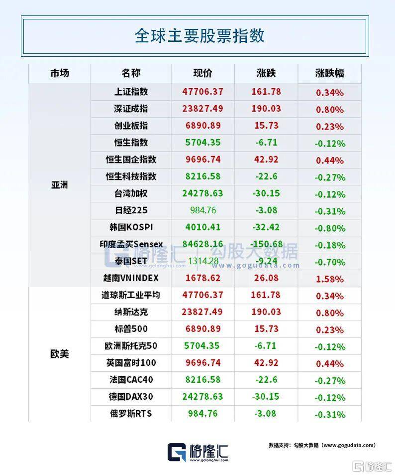全球资产表现上,COMEX黄金期货跌0.73%,报2954.1美元/盎司;COMEX白银期货跌0.63%,报47.025美元/盎司。国际油价微跌,WTI原油期货结算价不变,报60.15美元/桶;布伦特原油期货结算价收跌1.60%,报63.86美元/桶。
