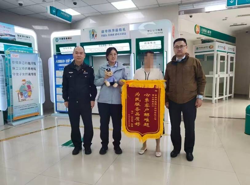 近日,农行黄山分行通过快速响应、高效协同,成功拦截一笔涉诈黄金交易,为客户挽回经济损失9.3万余元,客户专程送来锦旗,对农行黄山分行“心系客户解难题 为民服务品质好”的服务表示高度赞誉。此举生动展现了农业银行在防范电信网络诈骗方面的专业能力和“金融为民”的责任担当。