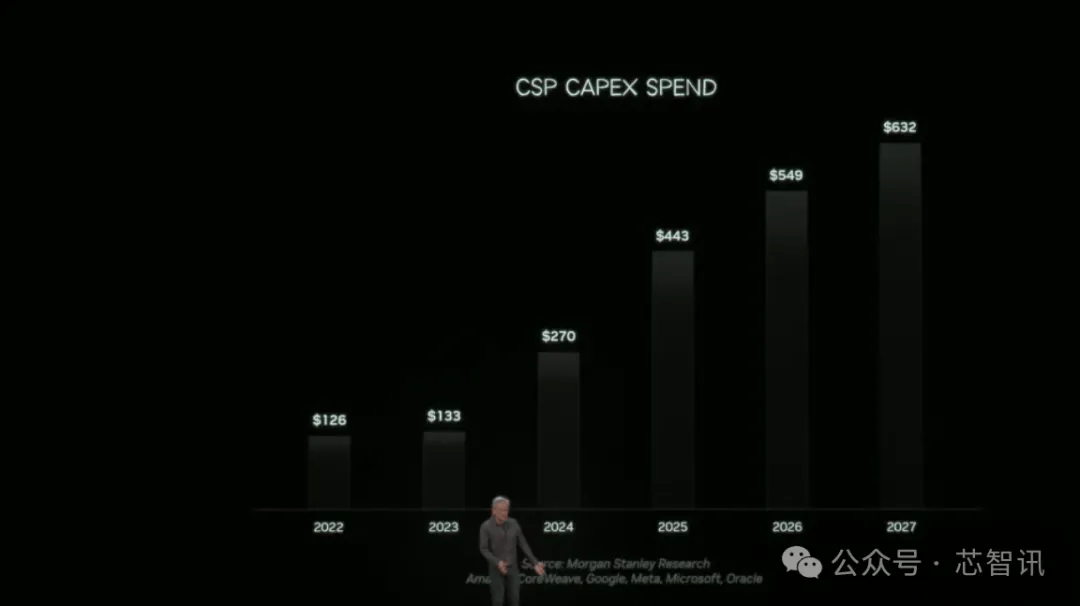 黄仁勋还展示了,全球六大云巨头的资本支出曲线(CapEx),正以史无前例的速度飙升。但是如果选择采用英伟达最新的GB200 NVL72 AI超级计算机将会带来综合成本的大幅降低。因为,虽然这是世界上最昂贵的计算机,但却能生成成本最低的token。