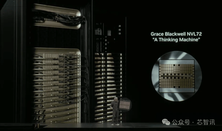 黄仁勋在此次的GTC大核上,再度展示了他的“芯片盾牌”——今天的盾牌由NVLink连接的72个GPU构成。他还调侃道,“下次要演雷神,一伸手,芯片就到手里了。”