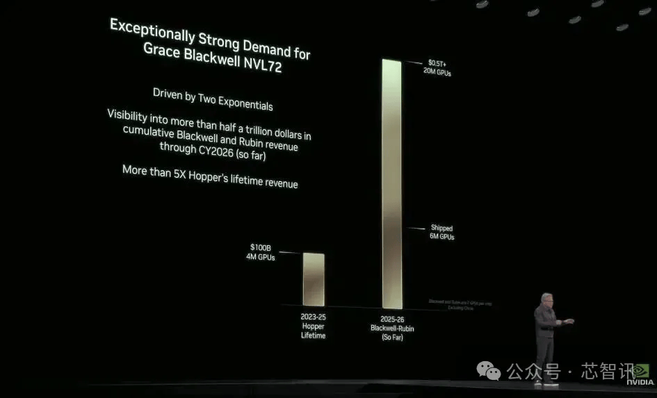 黄仁勋还表示,过去四个季度已出货600万块Blackwell GPU,需求依然强劲。英伟达预计,Blackwell和明年推出的Rubin芯片将合计带来五个季度5000亿美元的GPU销售额。