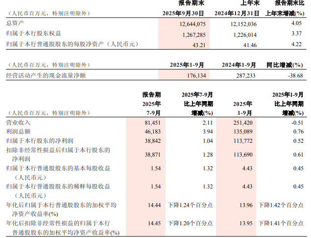 【大河财立方消息】10月29日,招商银行发布2025年第三季度报告。