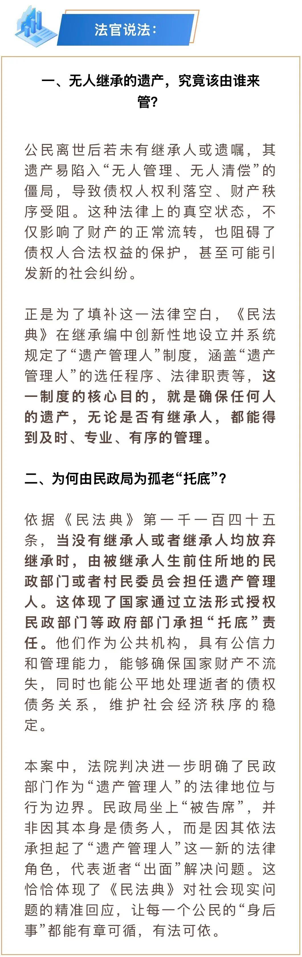 孤老宣先生生前用自己的房屋向银行申请了最高额抵押贷款。其因疾病离世后,该贷款无法继续清偿。为解决债务清偿问题,银行先向法院要求指定遗产管理人,法院经审理查明老人已无继承人,遂指定被继承人生前住所地的民政局为遗产管理人。随后,银行提起本案诉讼,要求民政局作为遗产管理人在管理遗产的范围内清偿贷款。