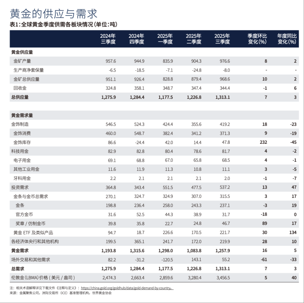 全球黄金ETF总持仓大幅增加叠加金条与金币需求连续第四个季度突破300吨,共同推动了黄金总需求的增长。